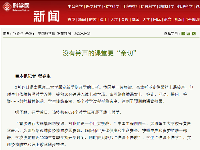 在网络教学中,该校教师张玮深有感触地说:“要感谢学校教务部,在短时间内建立了‘理工大超星平台客服答疑’QQ群和‘太原理工中国大学MOOC建设’微信群等平台,帮助授课老师们提前熟悉网络教学软件,熟练操作各种公共教学平台。”