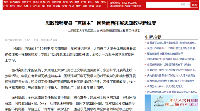 全体思政课教师群策群力,学习网络直播新技术,变身“直播主”,担任战“疫”宣讲员,确保疫情防控期间思政教育不断档,推动课堂改革,有效提升了教学工作的针对性和有效性。