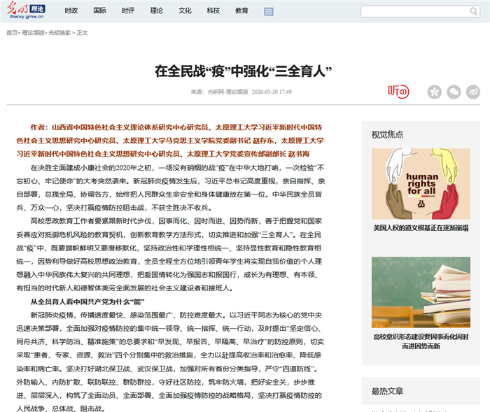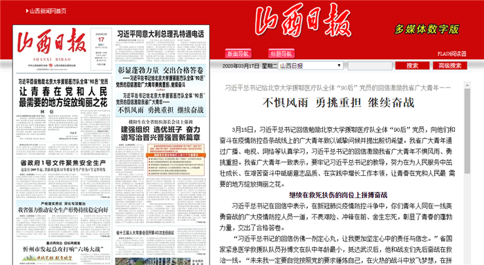 习近平总书记给北京大学援鄂医疗队全体“90后”党员的回信激励我省广大青年——不惧风雨 勇挑重担 继续奋战